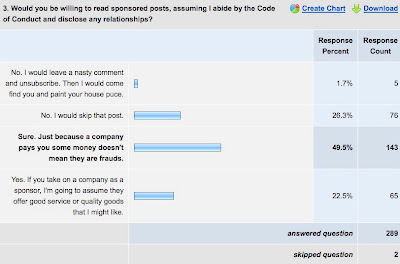 - Sponsored posts, however, you would mind less, as long as I choose sponsors in good taste. (Well, I should certainly hope so, as my mother would say.)