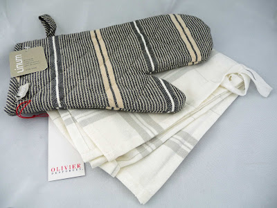 I think kitchen linen, whatever you call it in your neck of the woods, makes a wonderful souvenir or gift. I love the black and white. My oven mitts are disgusting now that I see yours. I'm off to buy new ones.