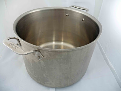 To draw the winner’s name I thought it appropriate this time to use my very large All Clad stockpot. Useful for soups. I must say, too heavy for mundane things like pasta water. Revereware has a valuable role to play in real-life kitchens. But I digress.
