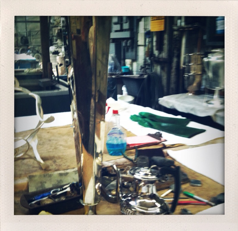 Images: me, my silverware, and the steampunk style workbench of old world craftsmen