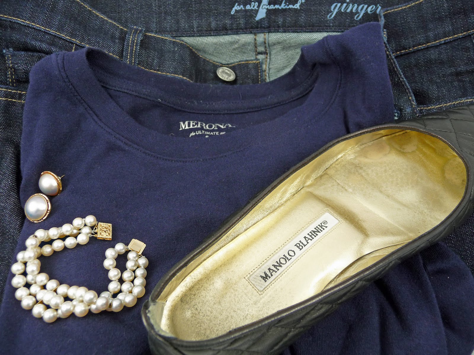 The third overwhelmingly fashionable item I bought was a new navy tee. For $8. What am I talking about? Jeans and a navy shirt count as minimalist, monochromatic dressing. Jeans are navy. They are.
