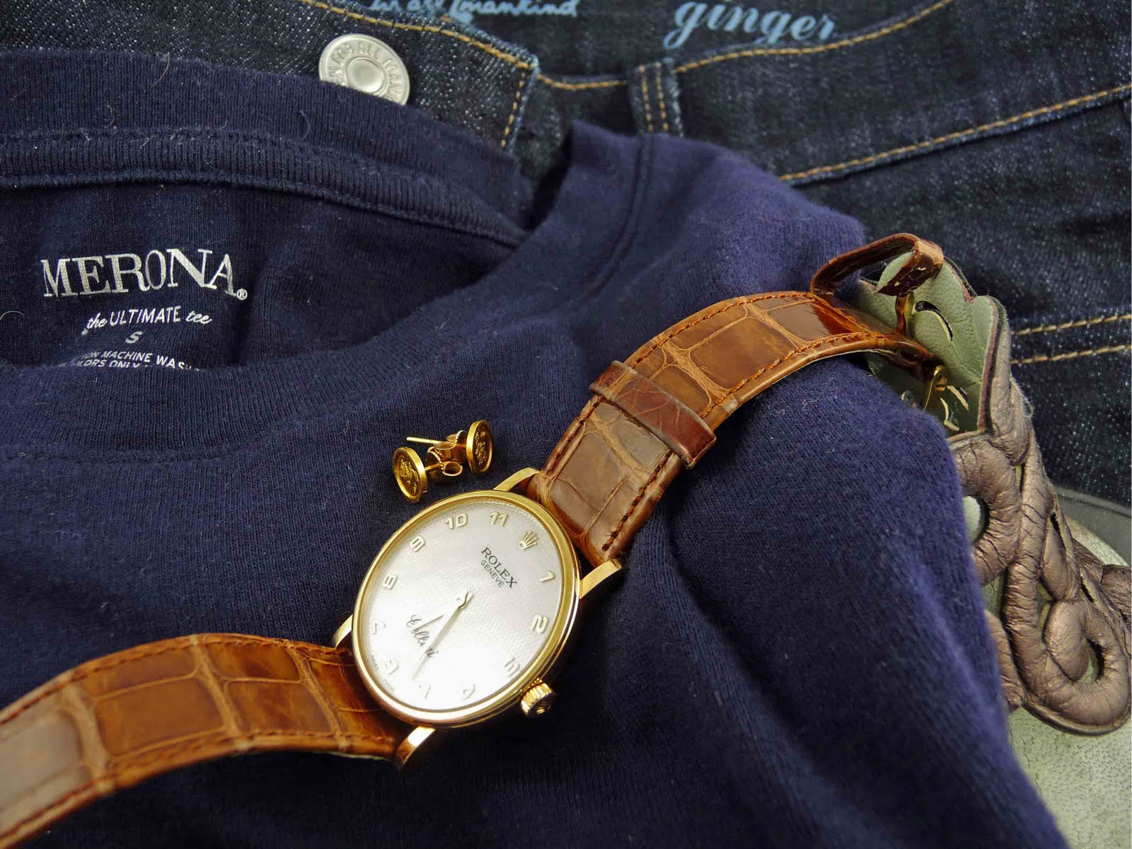 You will note signs of fraying above. The Manolos’ heel and the watch strap’s #1 loop are both in need of repair. This Sturdy Gal approach to classic dressing requires spending almost nothing on what you’ll wear for only a season. Conversely, one spends a reasonable amount on that which should last several years, i.e. blue jeans, and invests a fair amount of time and money to maintain what’s worn for decades.