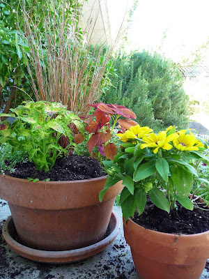 What pretty pots of plants you have, m'dear. Great minds think alike, indeed.