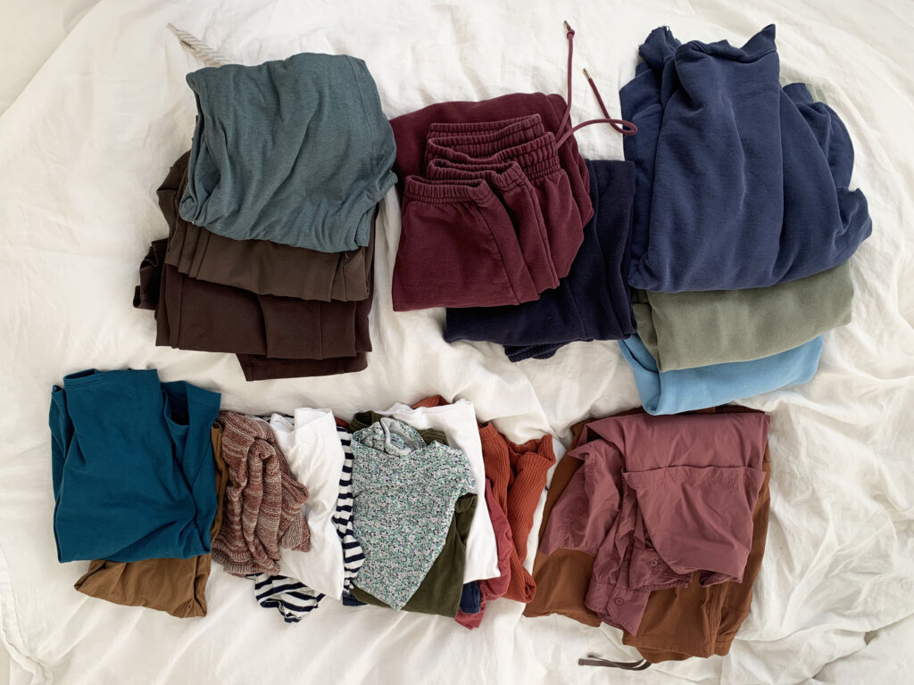What do we want to wear when we have absolutely nobody and nothing we’re answering to? In my case, turns out, sweatpants, tees and sweatshirts. I don’t like to worry that my crosslegged sitting will stretch out fabric knees. I don’t have the patience to button up anything. And I am surely not wearing shoes on my sofa.